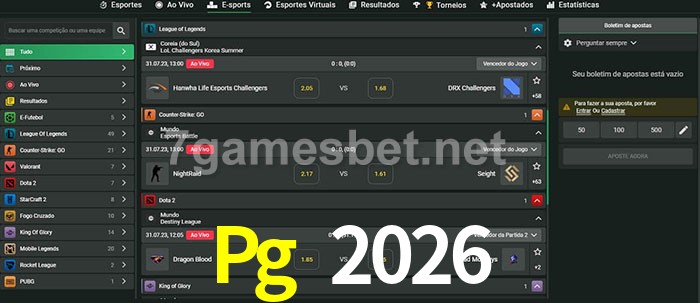 O Pg 2026 oferece uma grande seleção de opções de apostas em e-sports com probabilidades competitivas